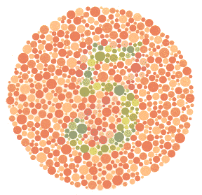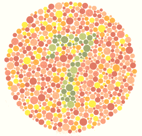Normaller ve total renk körlüğü olanlar bir rakam okuyamazlar. Sarı-yeşil renk körleri burada 5 rakamını göreceklerdir.