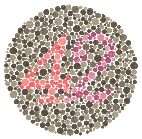 Normaller ve total renk körlüğü olanlar bir rakam okuyamazlar. Sarı-yeşil renk körleri burada 45 rakamını göreceklerdir.