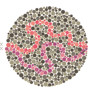 Kırmızı-yeşil renk körlerinin çoğu iki X işareti arasında bir yol görür ve izlerler. Normaller ve total renk körleri böyle bir yol bulamazlar.