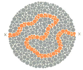 Normaller iki X işareti arasındaki dolambaçlı turuncu yolu kolaylıkla takip edebilirler. Renk algılama bozukluklarının çoğunda bu yol hiç takip edilemez veya takipte sapmalar ve yanlış yönlenmeler olur.